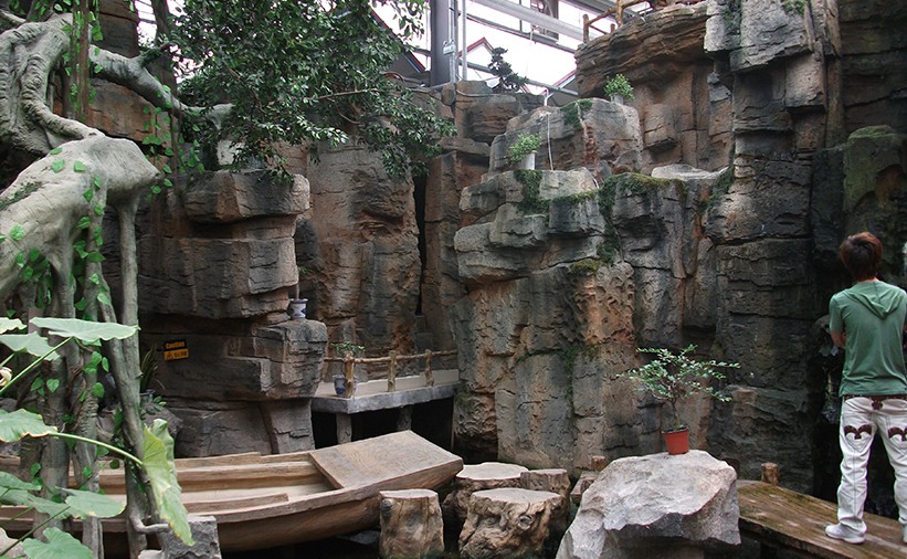 南京游樂園水泥直塑假山假樹施工完工