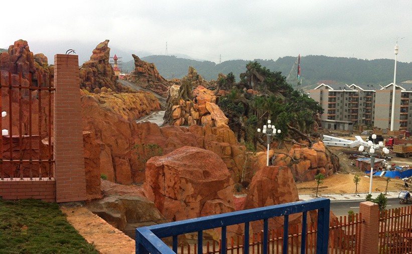 南京游樂園水泥直塑假山假樹施工完工