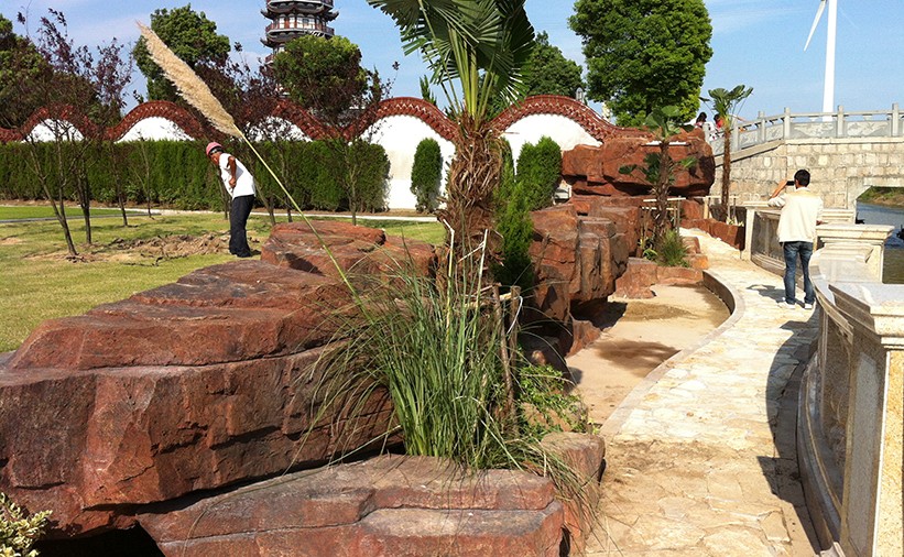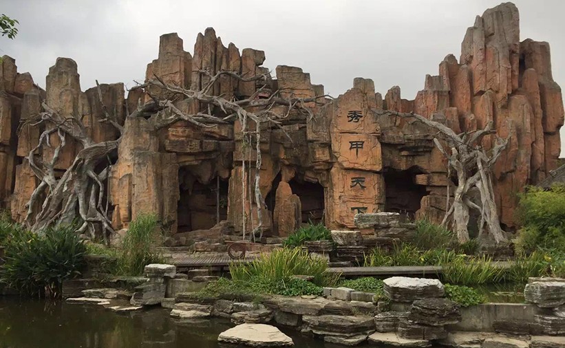 南京游樂園水泥直塑假山假樹施工完工